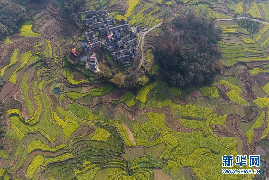 廣西融安縣東起鄉(xiāng)長(zhǎng)豐村的田園春色(3月10日無(wú)人機(jī)拍攝)。 近日,隨著氣溫持續(xù)回升,廣西融安縣境內(nèi)的油菜花開(kāi)放,春意盎然。 新華社記者 黃孝邦 攝