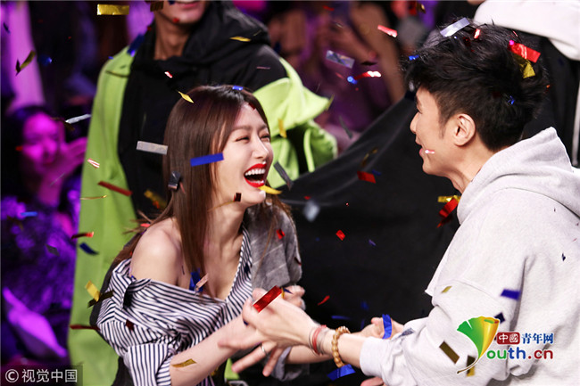 2019年3月31日,上海,2019上海秋冬時(shí)裝周,秦嵐助陣古巨基自創(chuàng)品牌大秀。她穿西裝紗紗裙笑容滿面可鹽可甜,斜肩小西裝正好能露出天鵝頸的線條,性感又不失知性?!拔灏⒏纭惫啪藁鶆t穿著隨性,與“知畫”牽手走秀,引起滿滿“回憶殺”。