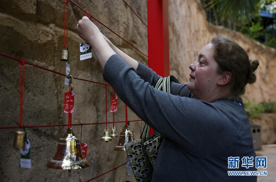 這是4月6日在美國(guó)圣迭戈動(dòng)物園“大熊貓友誼墻”拍攝的祝福簽。新華社記者李穎攝