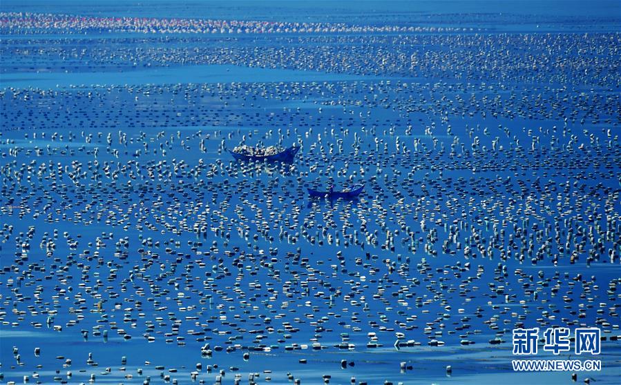 4月18日拍攝的連江縣筱埕鎮(zhèn)生產(chǎn)海帶的“海上牧場”,海帶邊角料成為鮑魚的食物。