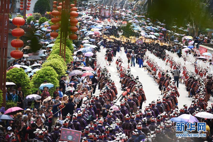 4月18日,臺江縣苗族群眾參加盛裝游演活動。 當(dāng)日,貴州省黔東南苗族侗族自治州臺江縣迎來一年一度的苗族姊妹節(jié)。節(jié)日期間將舉行苗族盛裝游演、千人長桌宴、千人游方體驗、苗族手工創(chuàng)意大賽等一系列活動。 姊妹節(jié)是臺江縣苗族同胞的傳統(tǒng)節(jié)日,2006年被列入第一批國家級非物質(zhì)文化遺產(chǎn)名錄。 新華社記者 楊文斌 攝