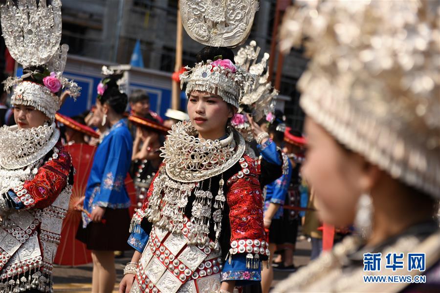 4月18日,臺(tái)江縣苗族群眾參加盛裝游演活動(dòng)。 當(dāng)日,貴州省黔東南苗族侗族自治州臺(tái)江縣迎來一年一度的苗族姊妹節(jié)。節(jié)日期間將舉行苗族盛裝游演、千人長桌宴、千人游方體驗(yàn)、苗族手工創(chuàng)意大賽等一系列活動(dòng)。 姊妹節(jié)是臺(tái)江縣苗族同胞的傳統(tǒng)節(jié)日,2006年被列入第一批國家級(jí)非物質(zhì)文化遺產(chǎn)名錄。 新華社記者 楊文斌 攝