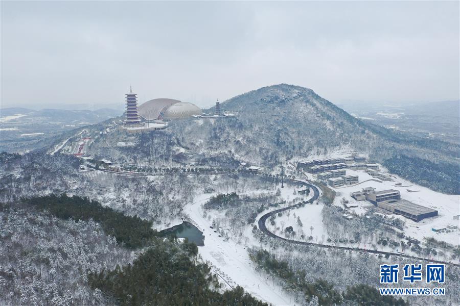 這是2月8日無人機(jī)拍攝的南京牛首山文化旅游區(qū)雪景。 新華社記者 季春鵬 攝