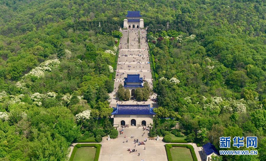 這是4月18日無人機(jī)拍攝的南京中山陵。 新華社記者 李博 攝