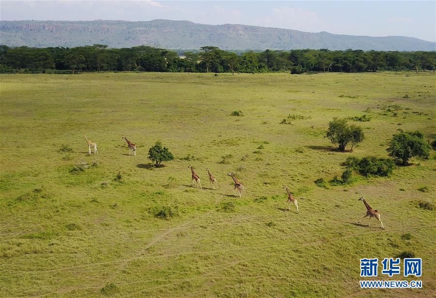 這是2017年6月21日在肯尼亞納庫魯國家公園拍攝的奔跑中的長(zhǎng)頸鹿。 新華社記者陳誠攝