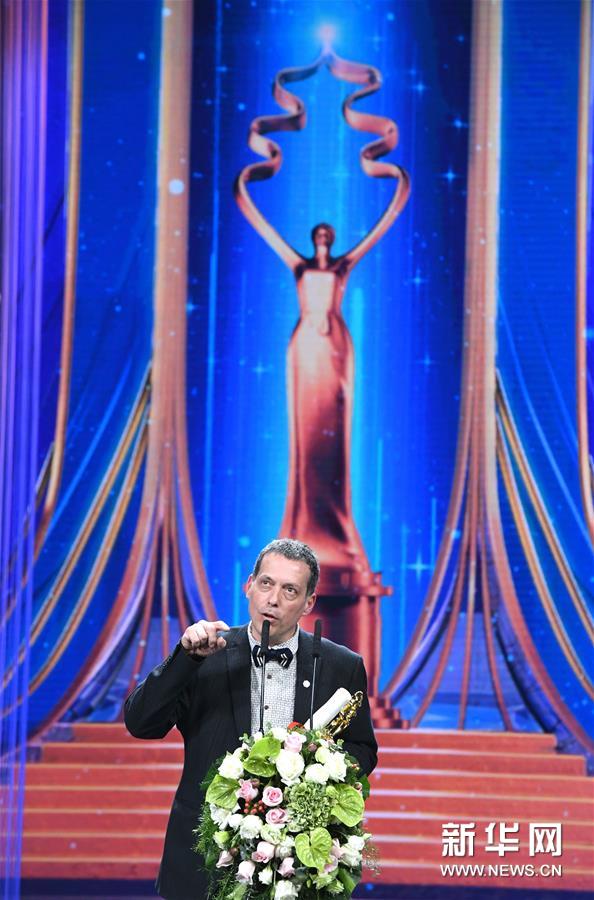 4月20日,影片《侍者》獲得“天壇獎最佳音樂獎”,領(lǐng)獎?wù)咴陬C獎典禮上發(fā)表獲獎感言。 當日,第九屆北京國際電影節(jié)閉幕式暨頒獎典禮在北京懷柔國家中影數(shù)字制作基地舉行。 新華社記者 陳曄華 攝