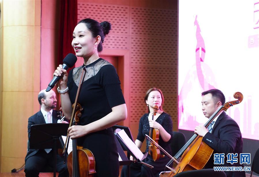 4月25日,上海交響樂團(tuán)的中提琴手巴桐在演奏前介紹曲目。 當(dāng)日,第一場“全城交響·上交為你而來”音樂會(huì)在復(fù)旦大學(xué)附屬腫瘤醫(yī)院報(bào)告廳奏響,為患者及醫(yī)護(hù)人員獻(xiàn)上一場專屬音樂會(huì)。“全城交響·上交為你而來”是上海交響樂團(tuán)2019年向全上海的機(jī)構(gòu)及個(gè)人開放的公益演出項(xiàng)目。 新華社記者 任瓏 攝