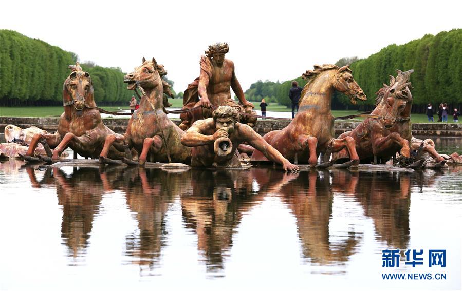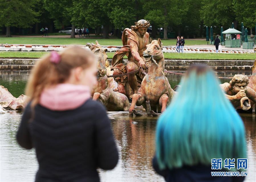 這是4月25日在法國巴黎近郊拍攝的凡爾賽花園內(nèi)的雕塑。新華社記者高靜攝
