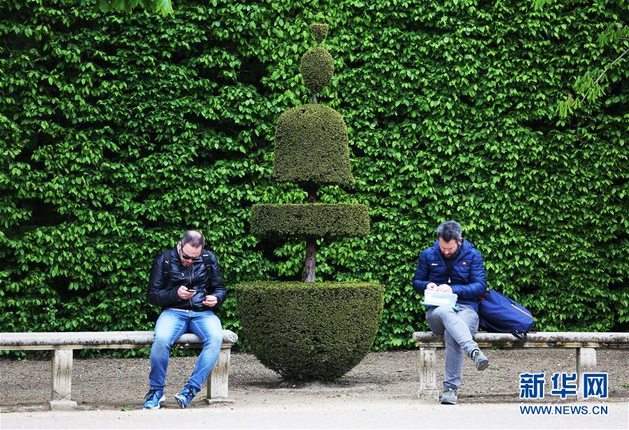 4月25日,人們?cè)诜▏屠杞嫉姆矤栙惢▓@內(nèi)游覽。新華社記者高靜攝
