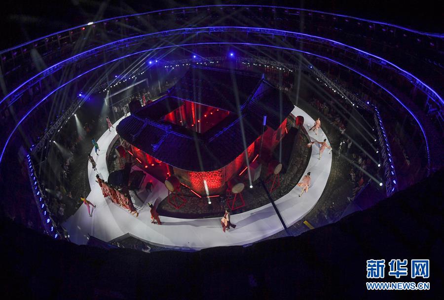 4月27日,表演結(jié)束后,模特在向觀眾致意。 當(dāng)日,土樓光語(yǔ)國(guó)際時(shí)尚大秀在福建省南靖縣的土樓裕昌樓內(nèi)舉行。這場(chǎng)融匯文化、時(shí)尚與旅游元素的大秀,通過(guò)傳統(tǒng)與時(shí)尚的有機(jī)融合,展現(xiàn)南靖土樓及文化的魅力和風(fēng)采。 新華社記者魏培全攝
