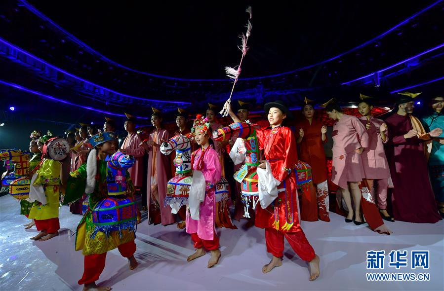 4月27日,小模特身穿民族服飾展示土樓當(dāng)?shù)氐姆俏镔|(zhì)文化遺產(chǎn)竹馬戲。 當(dāng)日,土樓光語(yǔ)國(guó)際時(shí)尚大秀在福建省南靖縣的土樓裕昌樓內(nèi)舉行。這場(chǎng)融匯文化、時(shí)尚與旅游元素的大秀,通過(guò)傳統(tǒng)與時(shí)尚的有機(jī)融合,展現(xiàn)南靖土樓及文化的魅力和風(fēng)采。 新華社記者魏培全攝