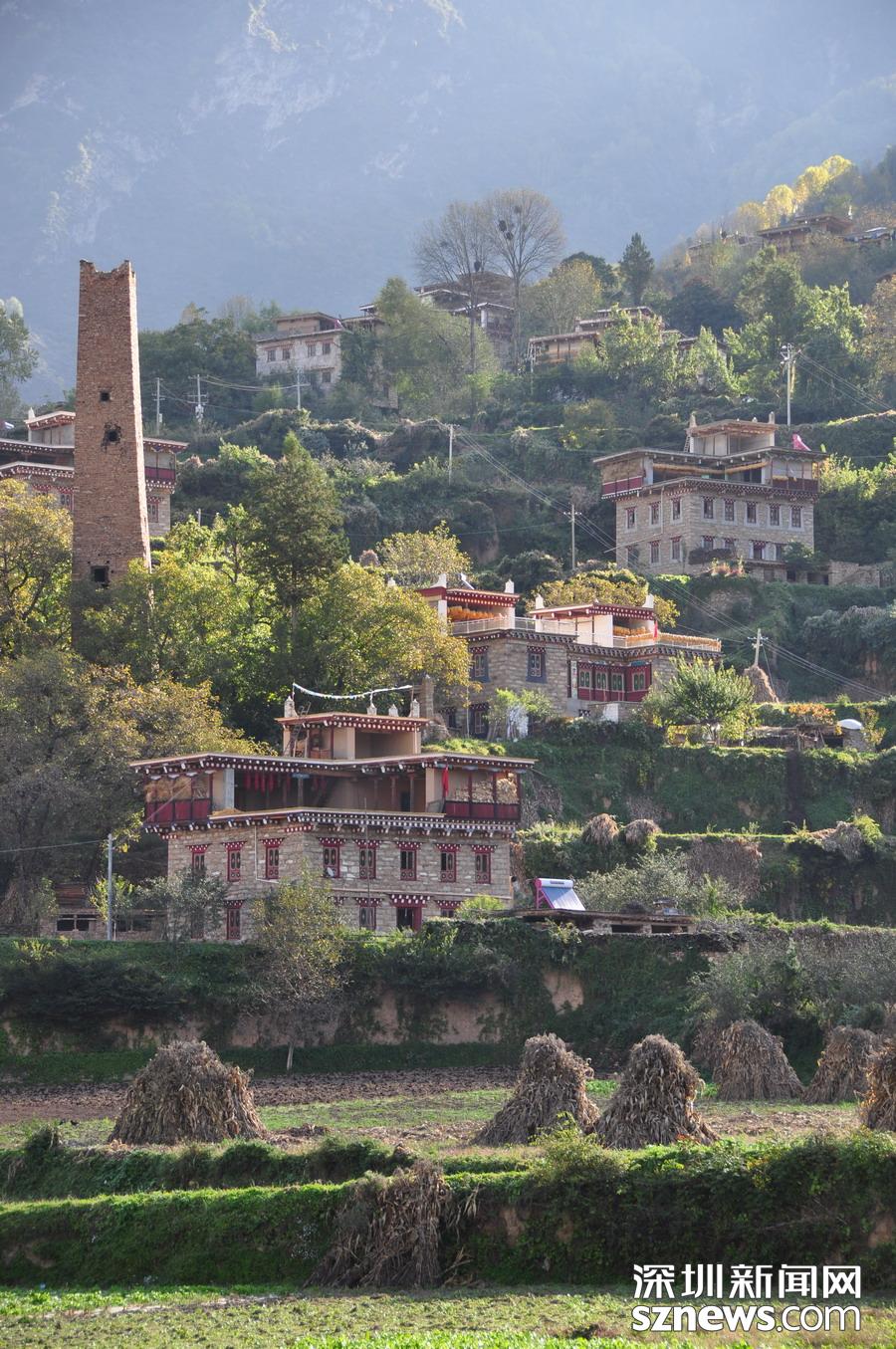丹巴西距成都348公里,是從事農(nóng)業(yè)生產(chǎn)的嘉絨藏族聚居的地方。當(dāng)?shù)厝司幼〉恼右话阈藿ㄔ谙蜿?yáng)的坡梁上,由幾十戶甚至上百戶人家組成。一幢幢外形美觀,風(fēng)格統(tǒng)一的寨房和碉樓依著起伏的山勢(shì)而建,構(gòu)成一幅幅優(yōu)美的畫卷。李仁奇攝