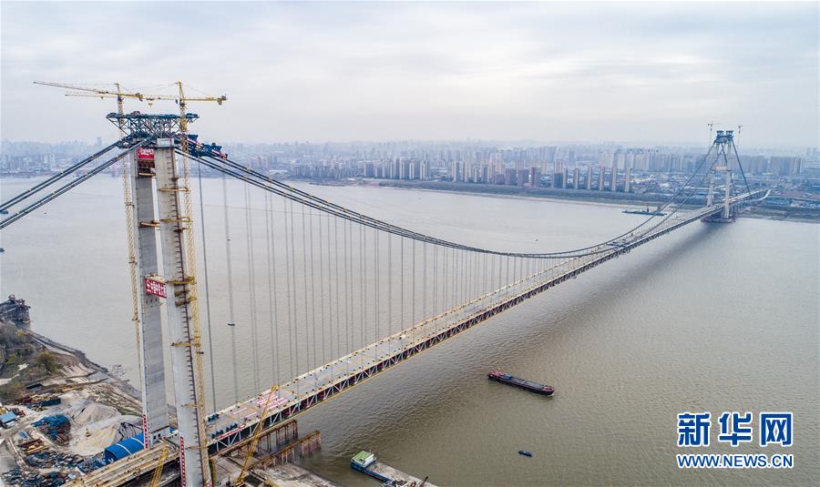 12月29日,武漢楊泗港長江大橋順利合龍(無人機(jī)拍攝)。新華社記者 肖藝九 攝