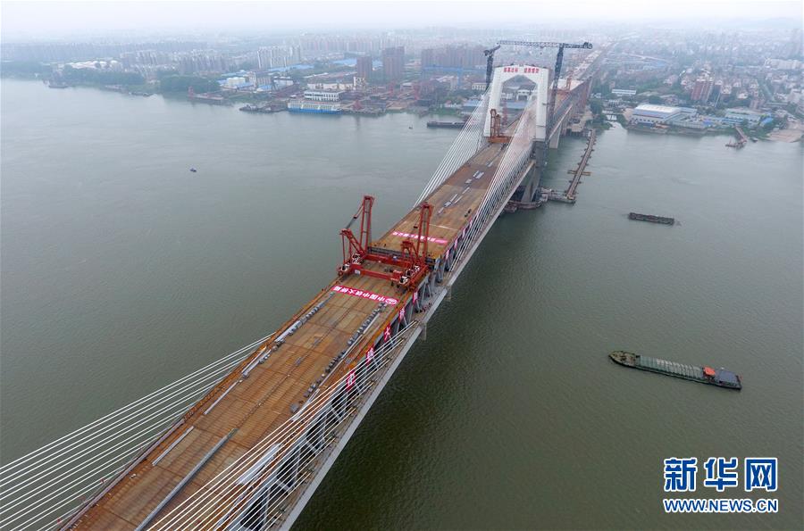 這是合龍后的商合杭鐵路蕪湖長江公鐵大橋(4月26日無人機(jī)拍攝)。