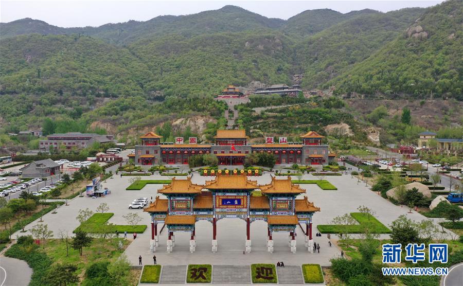這是4月19日拍攝的盤山風(fēng)景名勝區(qū)正門景觀(無人機(jī)拍攝)。新華社記者 李然 攝