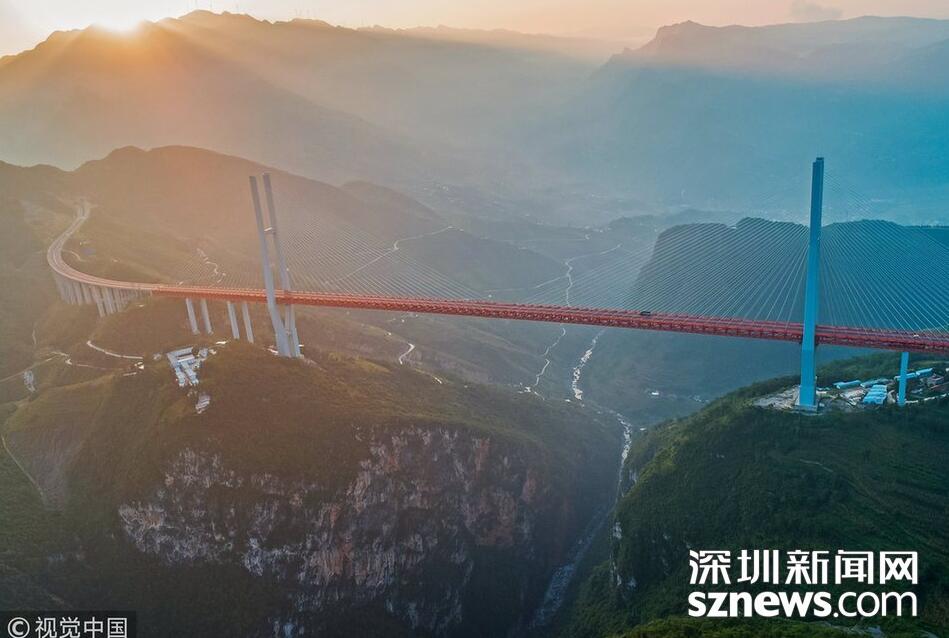畢都高速公路北盤江大橋是杭瑞高速公路畢都段的控制性工程,位于貴州省和云南省交界處,由貴州省和云南省共建。該橋橋面至江面高差達565米,成為目前世界第一高橋。主橋為鋼桁梁斜拉橋,主跨720米,目前位居同類型橋梁2016年12月29日正式通車。