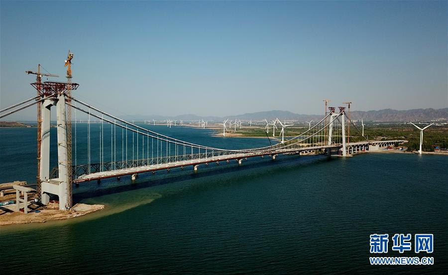 5月7日,工人在官廳水庫公路大橋上施工。 河北省懷來縣官廳水庫公路大橋是懷來沙城至東花園公路的節(jié)點工程,預計該橋將于2019年6月竣工。 新華社記者 楊世堯 攝