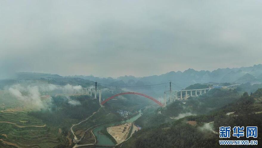 9月12日使用無人機拍攝的大小井特大橋。目前,橫跨在貴州省羅甸縣大井河上的大小井特大橋建設進入沖刺階段。大小井特大橋全長1.5公里,主跨450米,是世界最大跨徑上承式鋼管混凝土拱橋。據(jù)了解,該橋是平塘至羅甸高速公路關鍵性工程,對打通貴州“斷頭路”,助推滇黔桂石漠化片區(qū)脫貧攻堅具有重要意義。新華社記者劉續(xù)攝