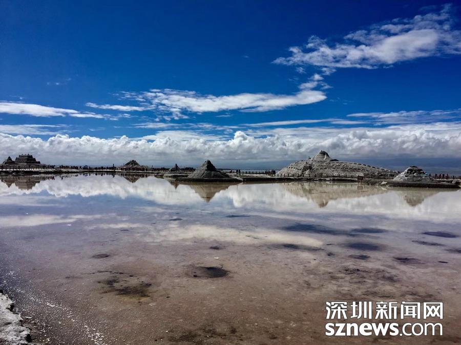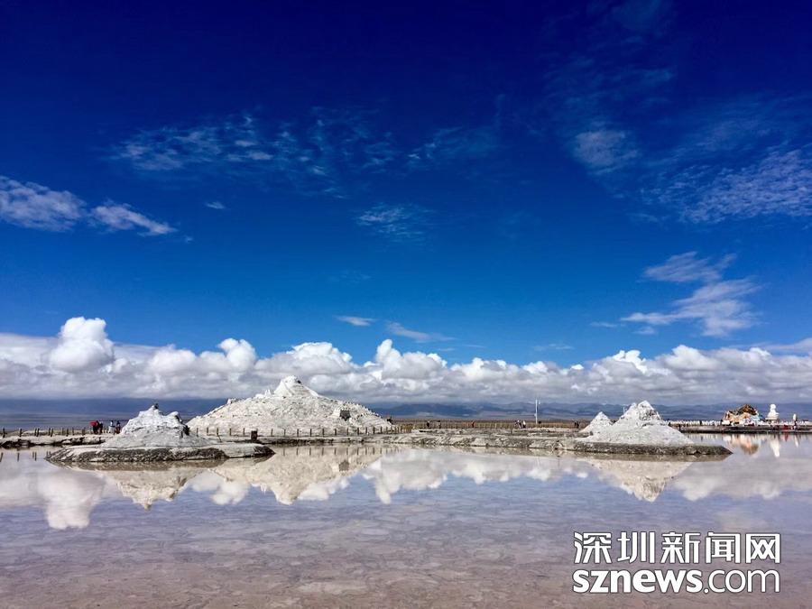 茶卡鹽湖位于青海省海西蒙古族藏族自治州烏蘭縣茶卡鎮(zhèn),原來是一家生產(chǎn)湖鹽的企業(yè),其擁有的鹽湖面積達105平方公里。近年來他們開始轉型發(fā)展旅游業(yè),以其獨特的“天空之鏡”享譽全國。李仁奇 攝