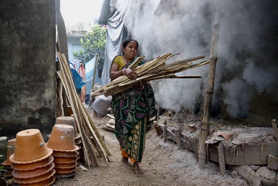 達卡遠郊區(qū)一個印度教徒聚居的村莊,幾乎家家戶戶都開辦制陶作坊,以傳統(tǒng)工藝制作陶盆、陶罐、陶盤和建筑裝飾陶器,遠銷孟加拉國內(nèi)各地。李仁奇 攝