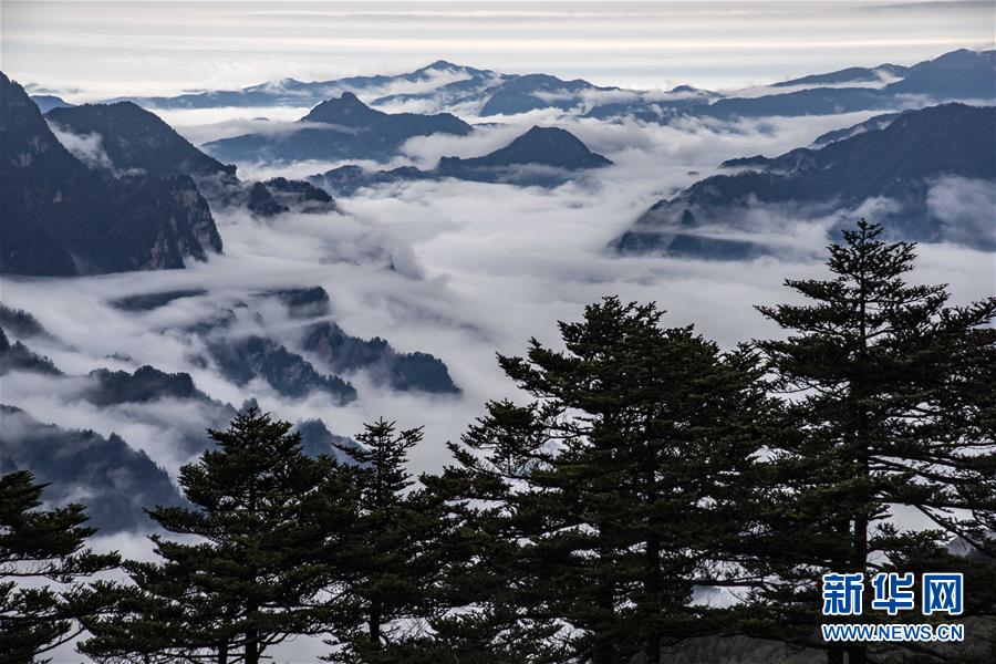 神農(nóng)架?chē)?guó)家公園陰峪河大峽谷云海(2018年10月20日攝)。 新華社記者 杜華舉 攝