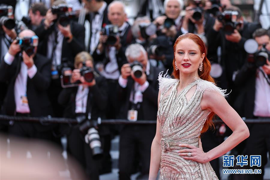 5月14日,在法國(guó)南部城市戛納,德國(guó)模特、演員芭芭拉·邁爾亮相開幕式紅毯。 5月14日,第72屆戛納電影節(jié)在戛納開幕。本屆電影節(jié)將持續(xù)至5月25日。 新華社記者 張鋮 攝