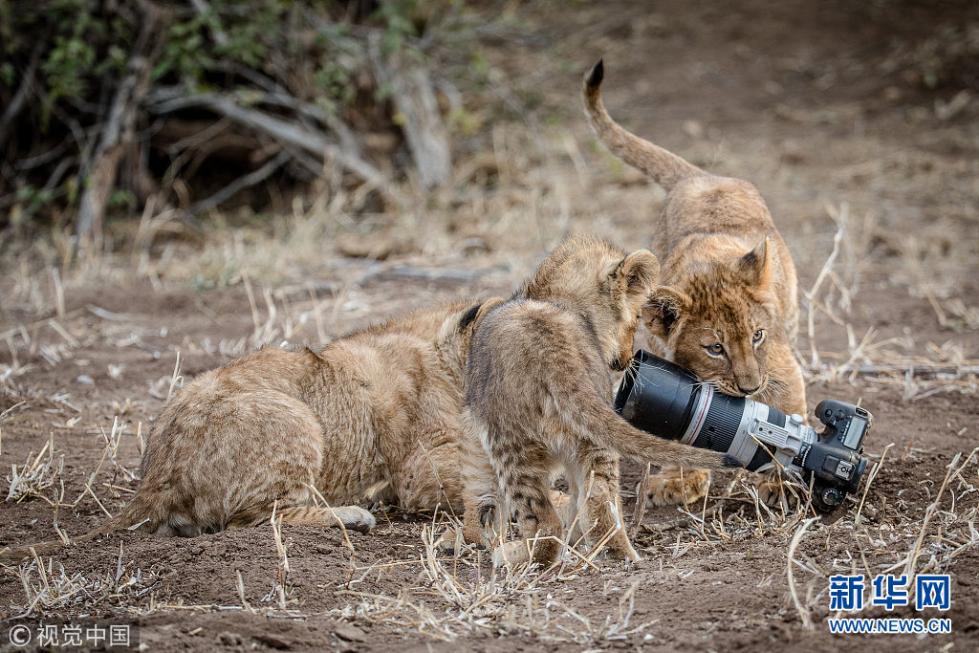 近日,非洲博茨瓦納馬沙圖野生動(dòng)物保護(hù)區(qū)內(nèi)一頭獅子叼起攝影師掉落在地上的相機(jī),之后還將相機(jī)交給小獅子們玩耍,看起來十分好奇,而攝影師非常無奈。現(xiàn)年57歲的叢林探險(xiǎn)家Barbara Jensen Vorster在一輛越野車上為馬沙圖野生動(dòng)物保護(hù)區(qū)的獅群拍照時(shí),相機(jī)不小心掉到了地上。砰的一聲響驚動(dòng)了母獅子,它向攝影師方向移動(dòng),迫使探險(xiǎn)隊(duì)撤退。(圖片來源:視覺中國(guó))