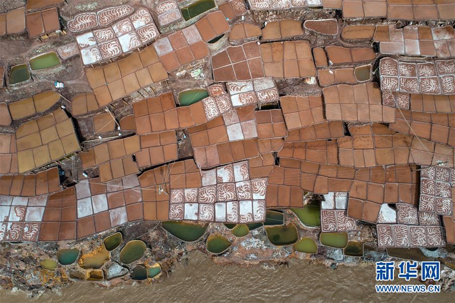 這是西藏芒康縣納西民族鄉(xiāng)的古鹽田景觀(5月22日無人機(jī)拍攝)。位于西藏昌都芒康縣瀾滄江畔的古鹽田,至今仍保持最原始的手工曬鹽方式。據(jù)史料記載,唐朝時(shí)期當(dāng)?shù)鼐烷_始曬鹽。鹽田在瀾滄江兩岸依山而建,由多根木柱搭架,架上用透水性強(qiáng)的泥土鋪成平面夯實(shí),當(dāng)?shù)鼐用駨臑憸娼系柠}井、鹽池中取出鹵水倒入鹽田,經(jīng)陽光蒸曬、風(fēng)干,結(jié)晶成鹽。遠(yuǎn)遠(yuǎn)望去,鹽田錯(cuò)落有致,田中鹵水宛若鏡面,形成壯麗奇觀。新華社記者李鑫 攝