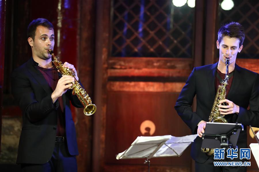 5月26日,凱比亞特樂隊成員在音樂會上表演。 當(dāng)日,作為第十九屆“相約北京”藝術(shù)節(jié)系列演出之一,西班牙凱比亞特樂隊薩克斯四重奏音樂會在北京Temple東景緣上演。 新華社記者 張玉薇 攝