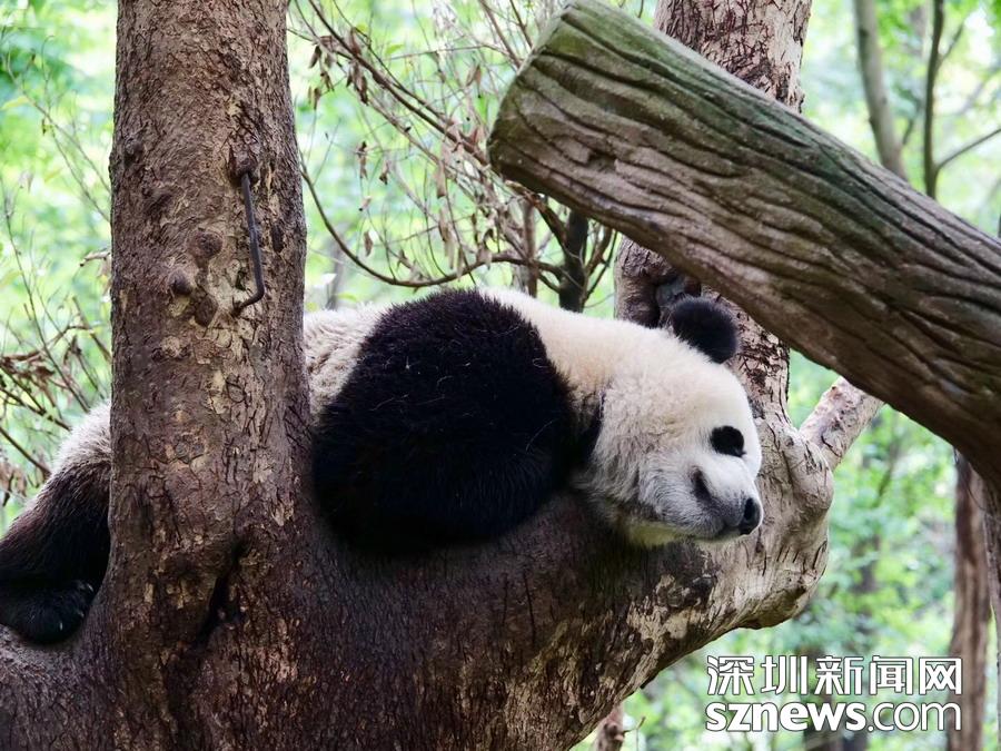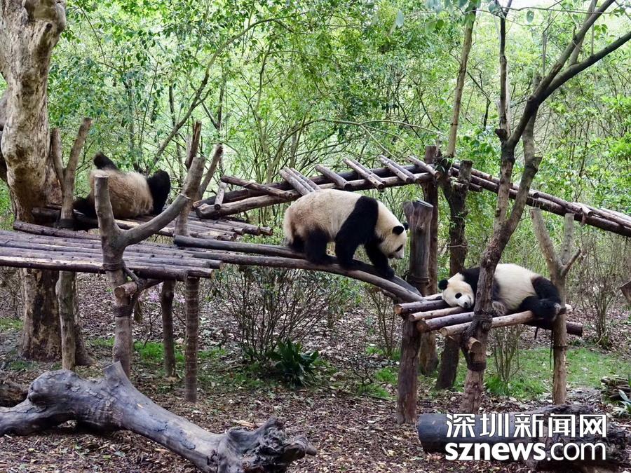 5月26日在中國(guó)大熊貓保護(hù)研究中心臥龍神樹(shù)坪基地的“熊貓幼兒園”內(nèi)拍攝的大熊貓。