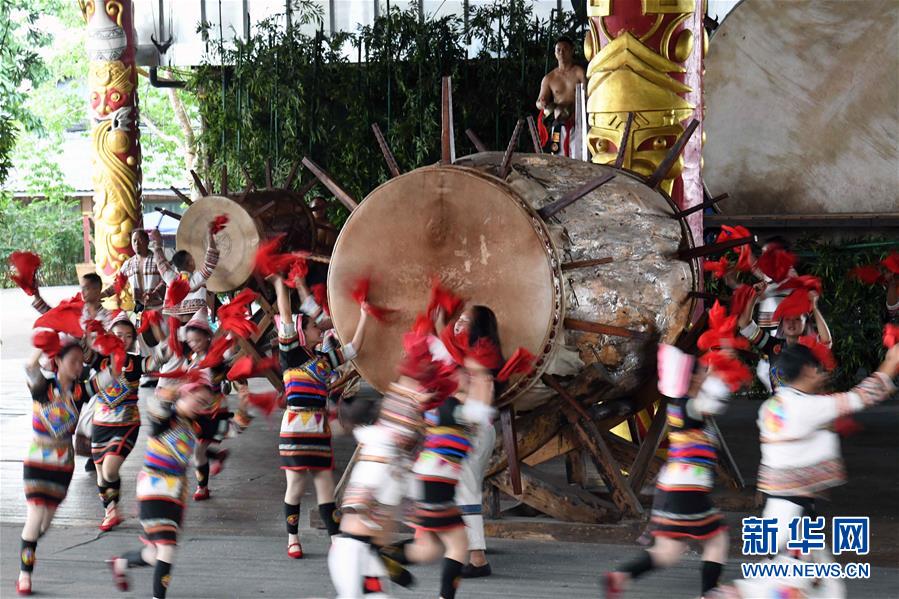 基諾族演員在表演大鼓舞(6月1日攝)。 在云南省西雙版納傣族自治州景洪市基諾山基諾族鄉(xiāng)的基諾族村寨,每天的基諾大鼓舞表演吸引了眾多游客前來觀賞體驗,帶動了基諾族群眾就業(yè)和增收?;Z族大鼓舞蘊涵豐富的歷史文化內涵,已被列入國家級非物質文化遺產(chǎn)保護名錄。 新華社記者 楊宗友 攝