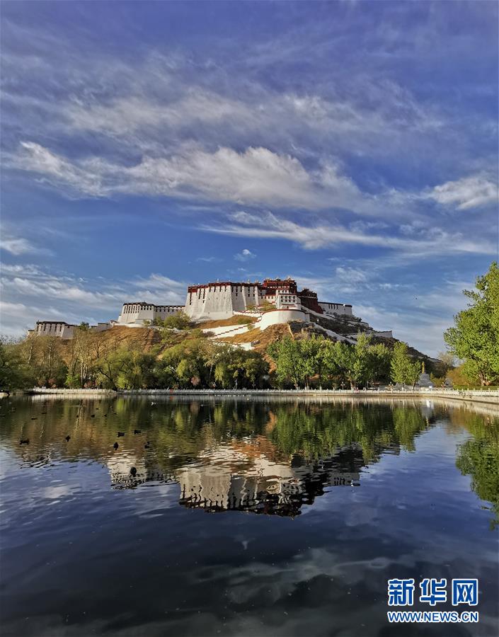 藍(lán)天白云下的布達(dá)拉宮(4月30日攝)。