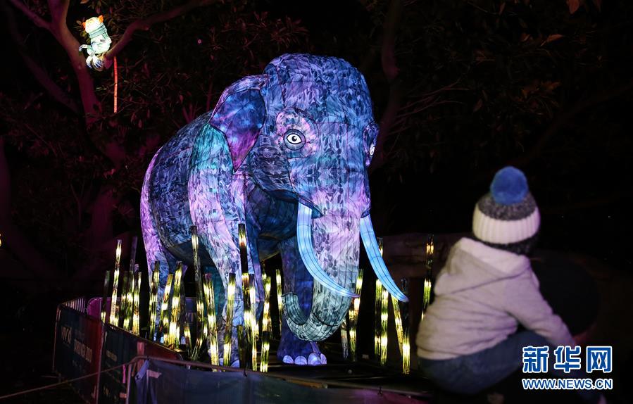 6月8日,在澳大利亞悉尼塔朗加動物園,游客參觀大象造型花燈。新華社記者 白雪飛 攝