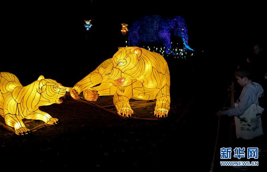 6月8日,在澳大利亞悉尼塔朗加動物園,游客參觀動物造型花燈。新華社記者 白雪飛 攝