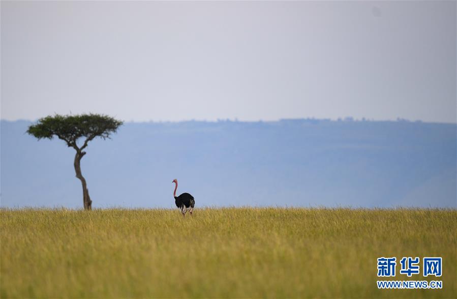 6月18日,在肯尼亞馬賽馬拉國(guó)家保護(hù)區(qū),一只鴕鳥在覓食。 新華社記者 李琰 攝