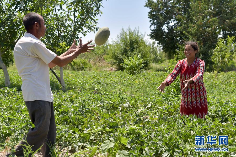 6月23日,新疆喀什地區(qū)巴楚縣的瓜農在采摘留香瓜。新華社記者 丁磊 攝