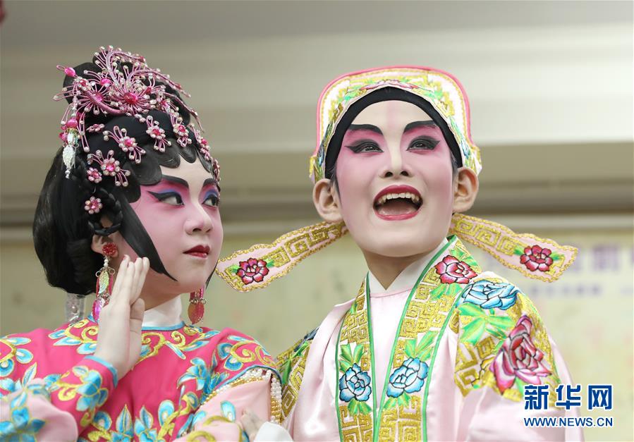 陸瑞徽(左)和利文喆在表演折子戲《艷曲醉周郎》(6月8日攝)。 聲輝粵劇推廣協(xié)會成立于2003年,是香港重要粵劇藝術團體之一,致力于向青少年推廣粵劇。協(xié)會目前有兩個初班,3個中班,一個青少年班?;泟∮址Q“廣東大戲”,表演技藝包括“唱做念打”,即唱功、身段、臺詞、武打,主要流行于廣東、廣西和香港、澳門等地區(qū)。2009年,粵劇被列入聯(lián)合國教科文組織人類非物質文化遺產(chǎn)代表作名錄,今年正逢十周年。 新華社記者 吳曉初 攝