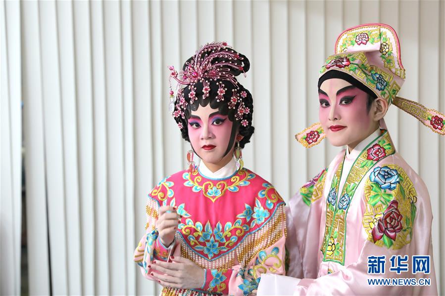 陸瑞徽(左)和利文喆在表演折子戲《艷曲醉周郎》(6月8日攝)。 聲輝粵劇推廣協(xié)會成立于2003年,是香港重要粵劇藝術(shù)團(tuán)體之一,致力于向青少年推廣粵劇。協(xié)會目前有兩個初班,3個中班,一個青少年班?;泟∮址Q“廣東大戲”,表演技藝包括“唱做念打”,即唱功、身段、臺詞、武打,主要流行于廣東、廣西和香港、澳門等地區(qū)。2009年,粵劇被列入聯(lián)合國教科文組織人類非物質(zhì)文化遺產(chǎn)代表作名錄,今年正逢十周年。 新華社記者 吳曉初 攝