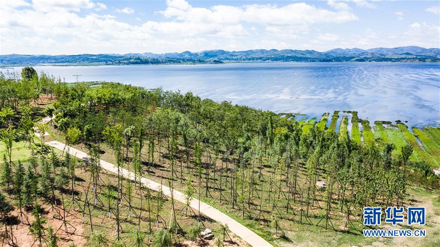 6月20日無人機(jī)拍攝的草海國家級自然保護(hù)區(qū)造林涵湖工程一隅。 新華社記者 陶亮 攝
