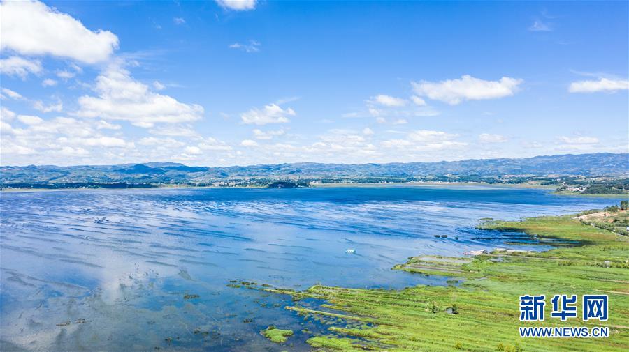 6月20日無人機拍攝的草海國家級自然保護區(qū),綠地部分是退耕還湖成果。 新華社記者 陶亮 攝