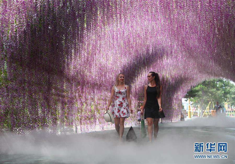 7月31日,列娜(左)結(jié)束表演后與同伴返回宿舍。新華社記者龍雷攝