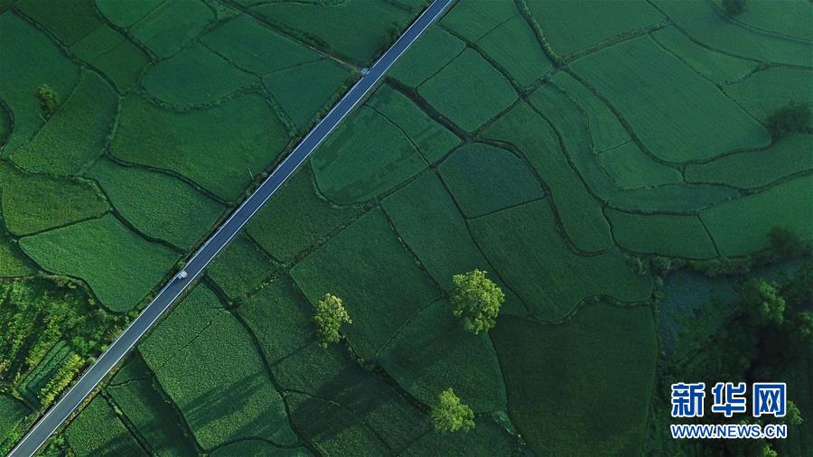 這是8月4日無人機(jī)拍攝的安徽黟縣宏村風(fēng)景區(qū)附近的農(nóng)田。新華社記者 張端 攝