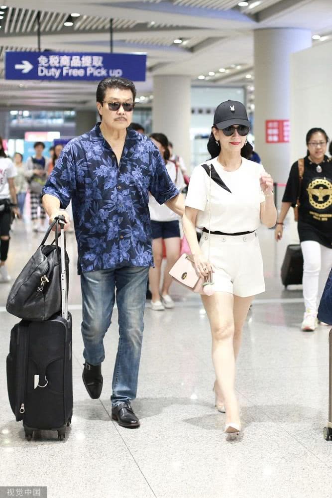 2019年8月10日,北京,趙雅芝與老公黃錦燊現(xiàn)身機(jī)場(chǎng)。