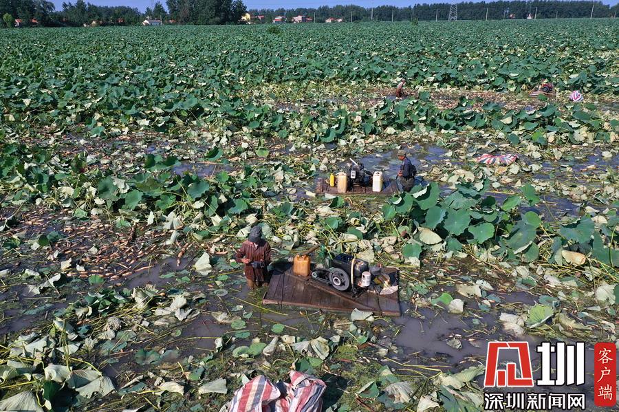藕農們抓緊采藕、清洗、包裝、運輸,以供應市場。