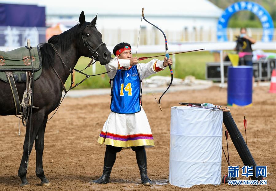 8月20日,騎手在“蒙古馬”傳統(tǒng)技巧表演中展示射箭。 當日,“蒙古馬”傳統(tǒng)技巧表演在呼和浩特市內(nèi)蒙古少數(shù)民族群眾文化體育運動中心舉行,此次表演共包括騎馬穿樁、射箭、騎馬拾哈達、騎馬繞桶等多個傳統(tǒng)馬術(shù)技巧項目。 新華社記者 彭源 攝