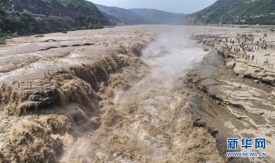 這是7月19日無(wú)人機(jī)拍攝的黃河壺口瀑布群。 新華社記者 陶明攝