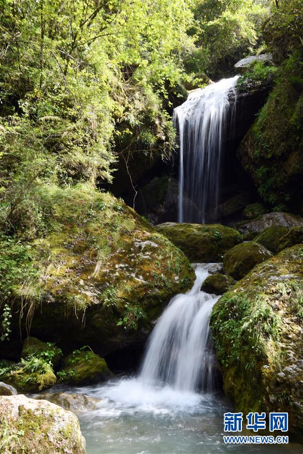 地洞河天坑底部的一處瀑布。位于陜西省漢中市寧強(qiáng)縣的地洞河天坑,是禪家?guī)r天坑群中規(guī)模最大的一處天坑,坑內(nèi)分布有石鐘乳、石筍,具有極高的地質(zhì)研究價(jià)值。新華社 張博文 攝