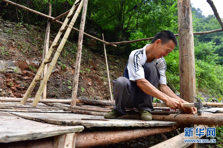 龍革雄在搭建雞舍(8月16日攝)。 新華社記者 黃孝邦 攝