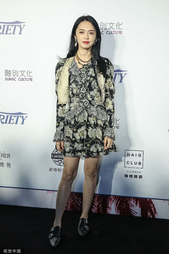 女演員姚晨亮相,穿黑白泡泡袖印花連衣裙,戴項(xiàng)鏈優(yōu)雅迷人