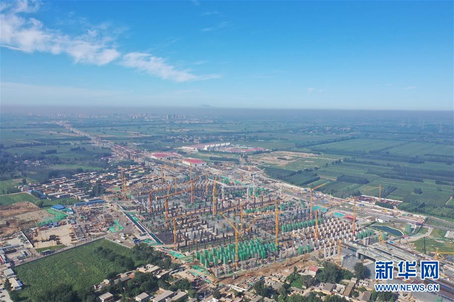 8月27日無人機拍攝的建設(shè)中的雄安站。